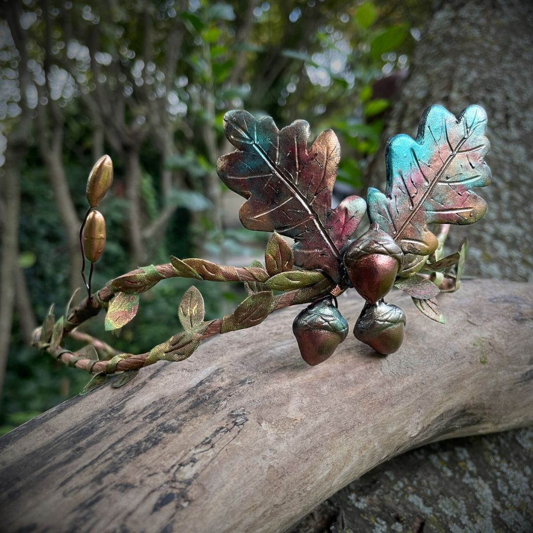 - Handmade Woodland Crown: Sculpted from polymer clay, this crown is meticulously crafted with oak leaves and acorns, symbolizing the magic of the forest.
