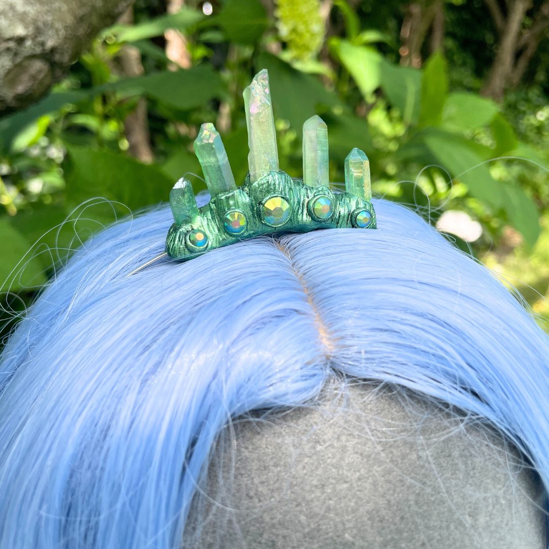 Green Crystal Faerie Tiara - Fairycore Crown Accessory