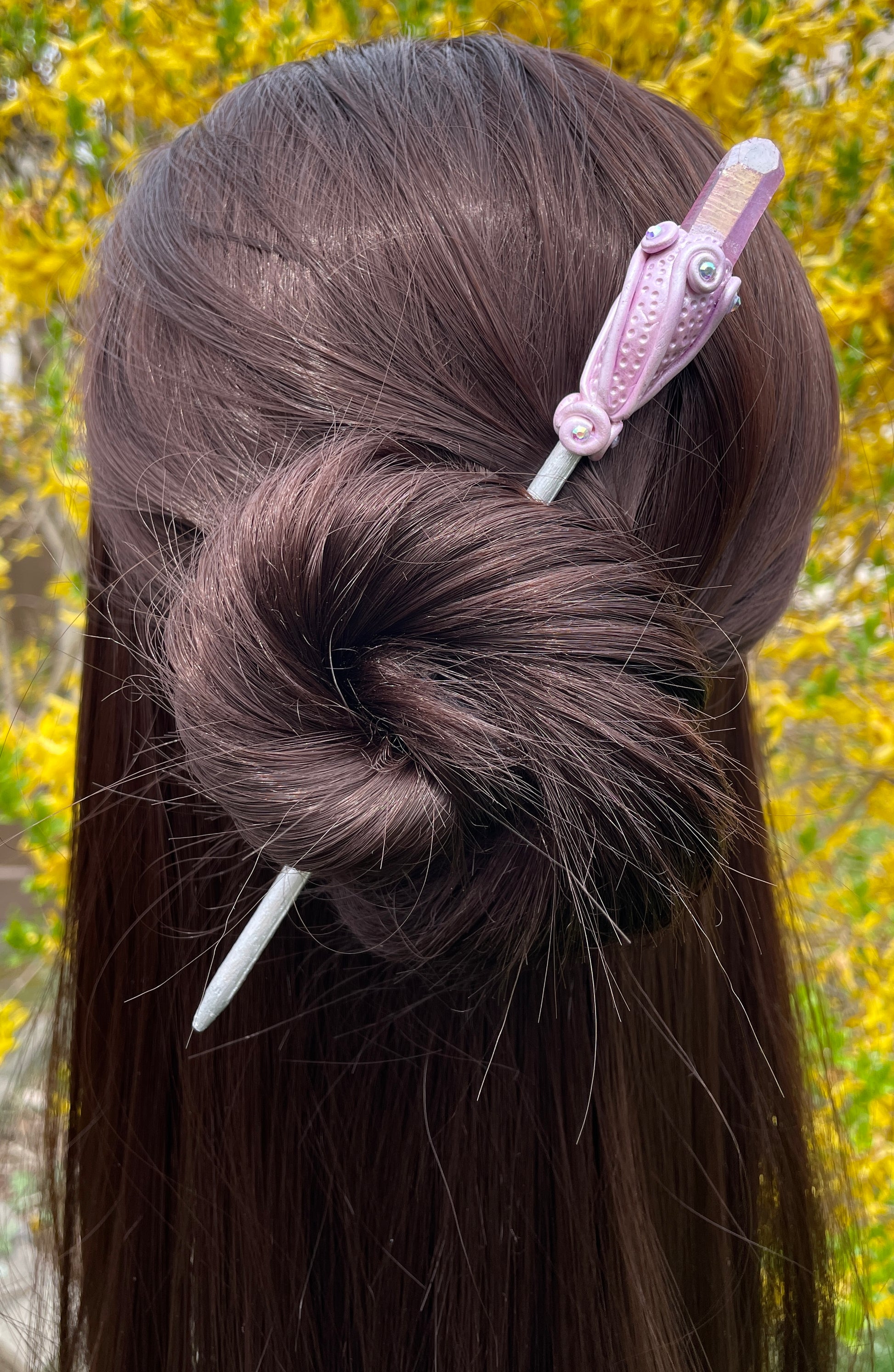 This crystal hair pin is made to order. Remakes will always vary slightly in color or design than pictured due to the one-of-a-kind nature of sculpting & creating each piece. I will do my best to match the photos as best as possible but cannot guarantee an exact match. Please note that colors on monitors do vary. Actual color may slightly vary from your monitor display.
