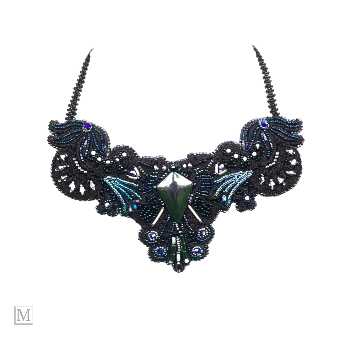 Evoke vintage romance and shadowed elegance with this one-of-a-kind hand-beaded lace choker—designed to enchant with every glance.